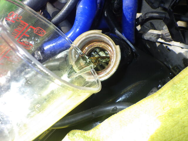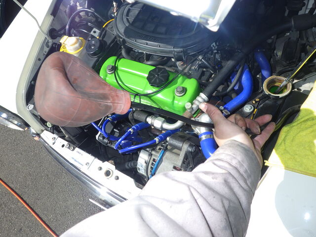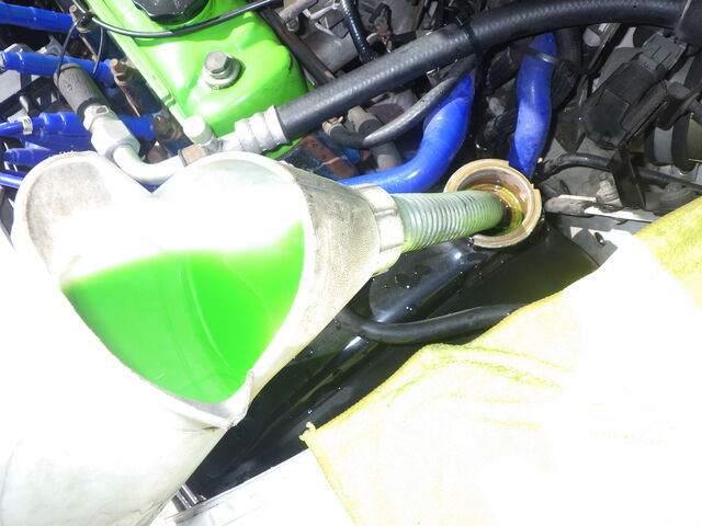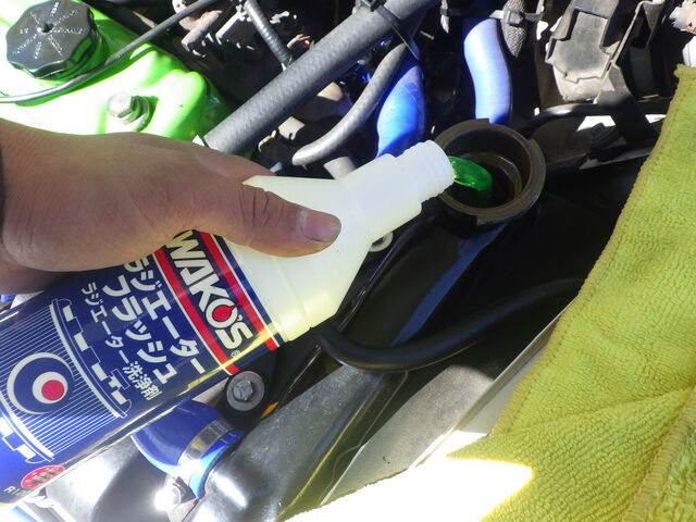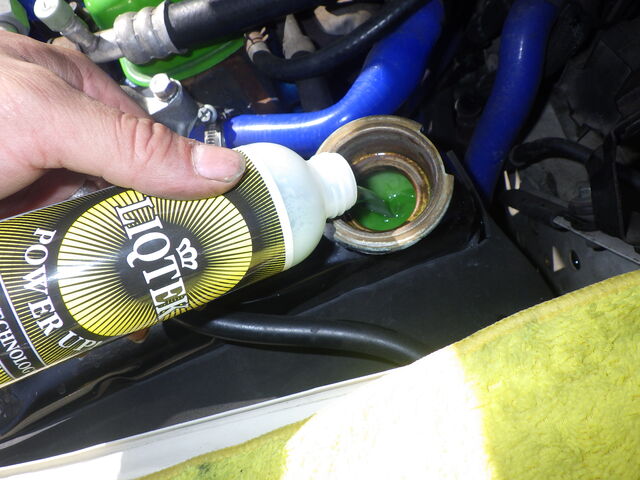 水路洗浄が完了したのでクーラントブースターとLLCとリキテックを入れてエアー抜きをしていきます。