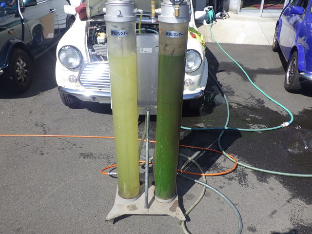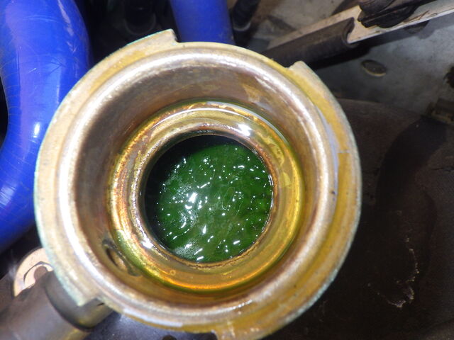 ラジエーター側は冷却水の薄れた色をしていますが、ヒーターコア側は錆が少し混じっていますね。