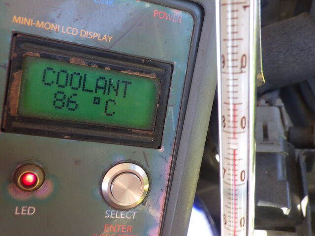 続いて、86度になってサーモが全開になり冷却水がラジエーター側に勢いよく流れ込んできています。