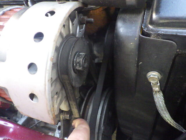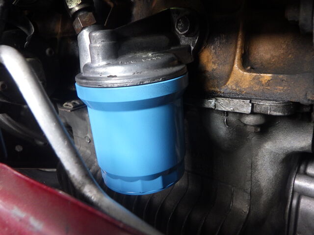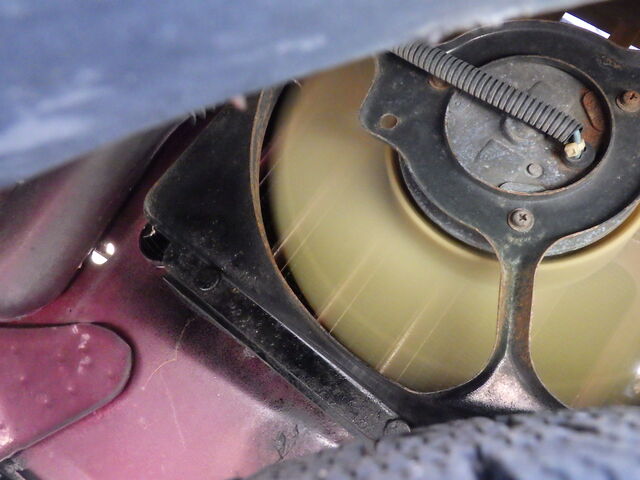反対側はガソリンタンクをずらさないと交換できないのでずらして交換して行きます。