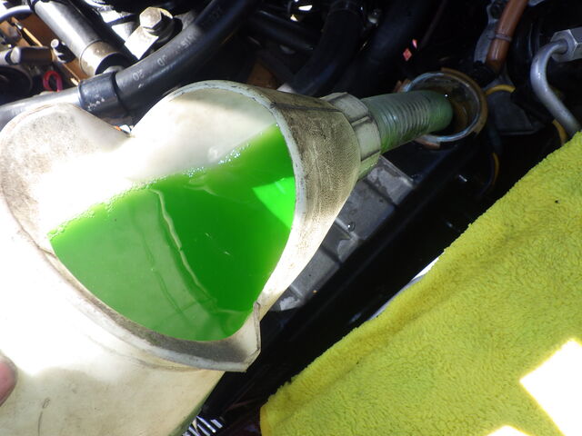 洗浄後は、LLCとクーラントブースターをいれて水路のエアー抜きをしておきます。