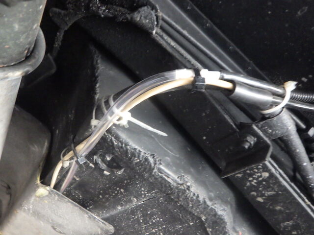 カンガルーからフロントのウォッシャージェットまで新しいホースを引き直します。