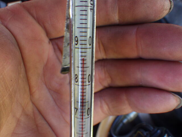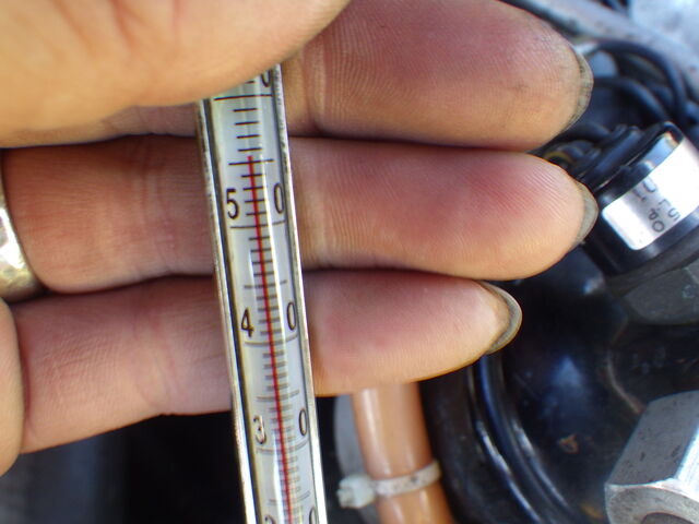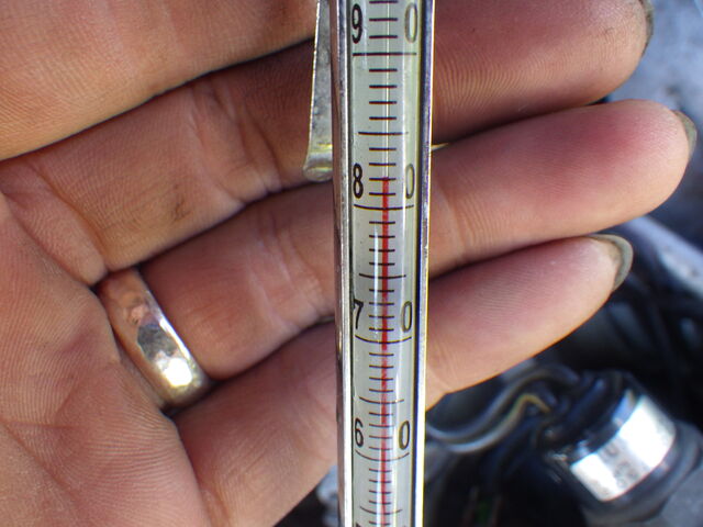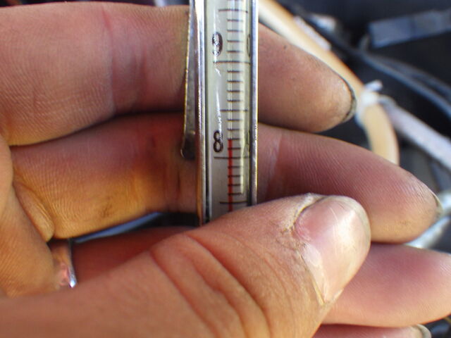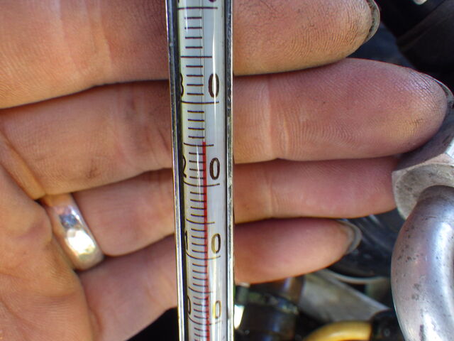 ちなみに、電動ファンが作動を開始したときの水温計の針の位置がこのあたりです。