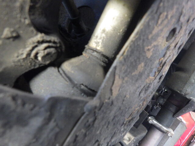 リアのナックルジョイントのブーツはかなりかわいそうな事になっています。