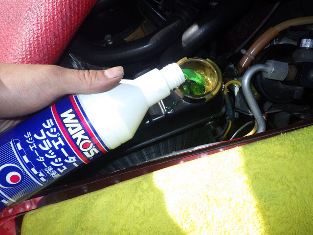まずは、ラジエーター洗浄剤を入れて各種点検をしていきます。