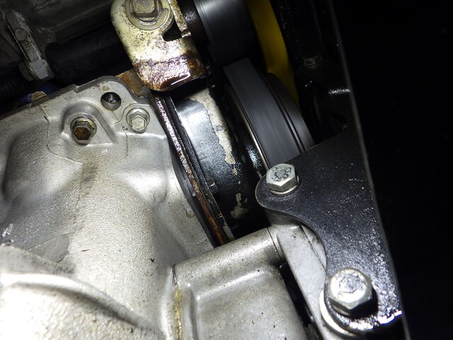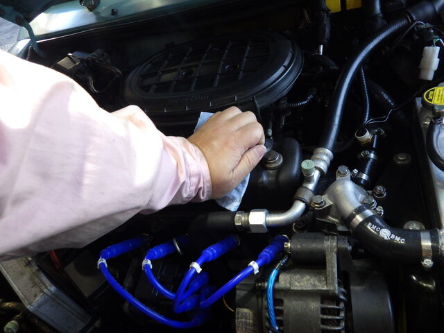 タイミングカバー側のオイルセパレーター付近まで油が付いています。