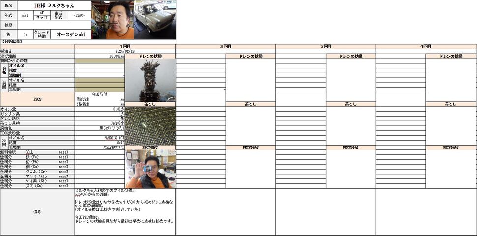 今回キャメルで初オイル交換だったのでオイル点検カルテを作りました。