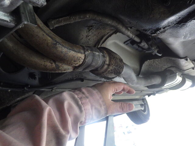 ダウンパイプの蛇腹は擦れていますが排気漏れの痕跡はありません。