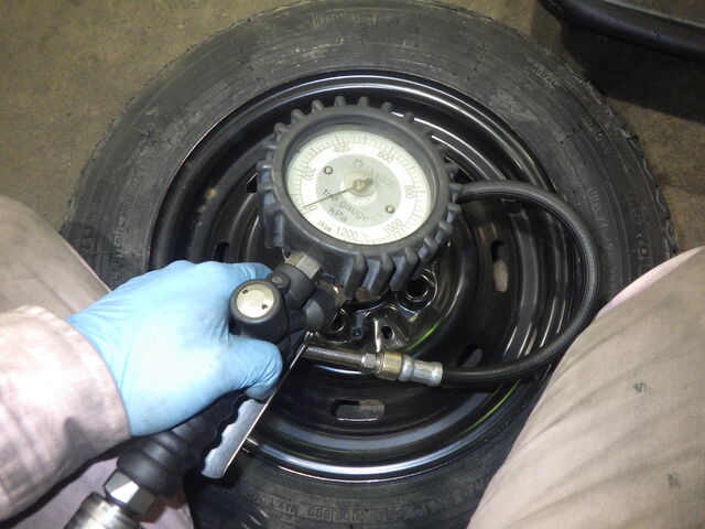 スペアタイヤは古くなっていますが使用することはまだ出来そうなので300kpa充填しておきました。