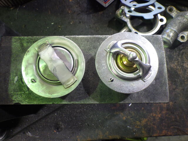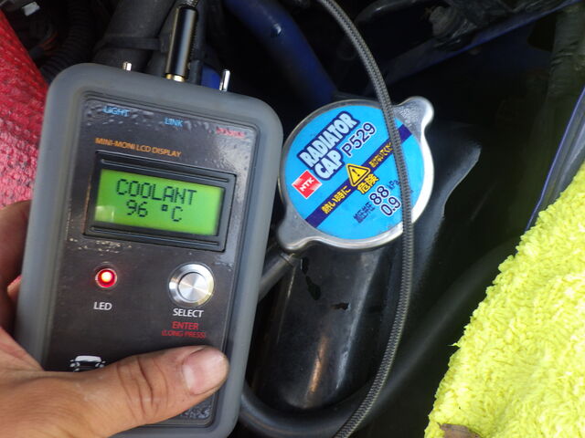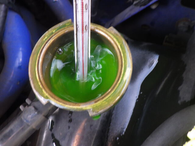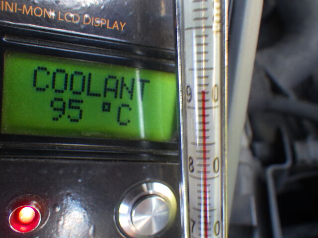 続いて、サーモスタットの密閉は悪く水温が温まる前に開いてラジエーター指した温度計に近い温度で推移してしまっています。
