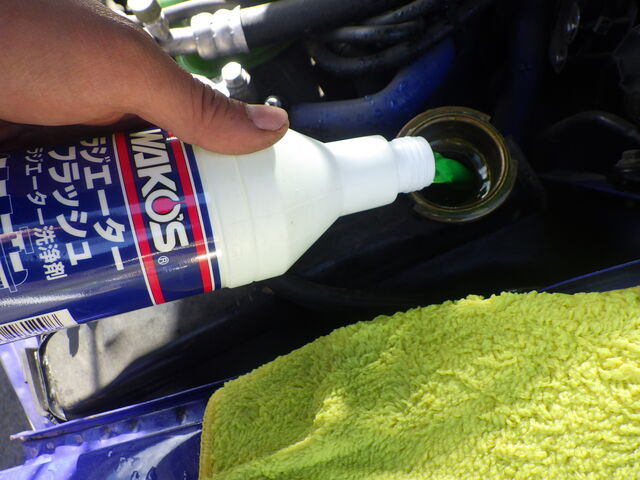 まずは、ラジエーター洗浄剤を入れて各種点検をしていきます。
