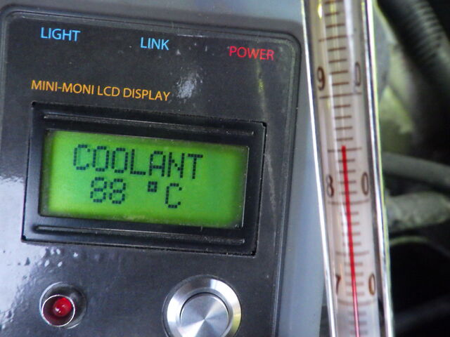 88度でサーモスタットは全開、ラジエーターに冷却水が流れ込んできているのが判ります。
