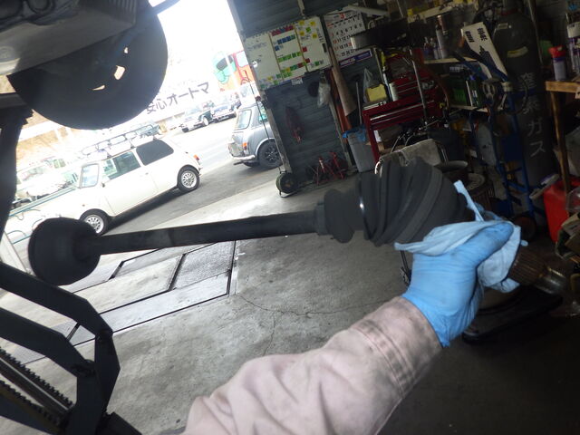 右のドライブシャフトは切れてはいませんがもう秒読み段階ですね・・・