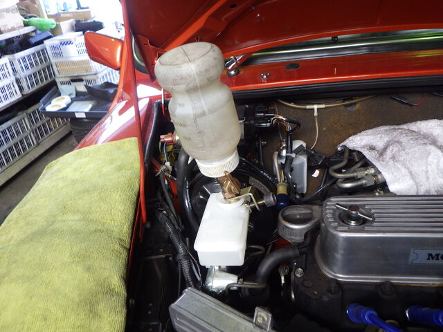 交換が完了したのでブレーキラインのエアー抜きをしておきます。