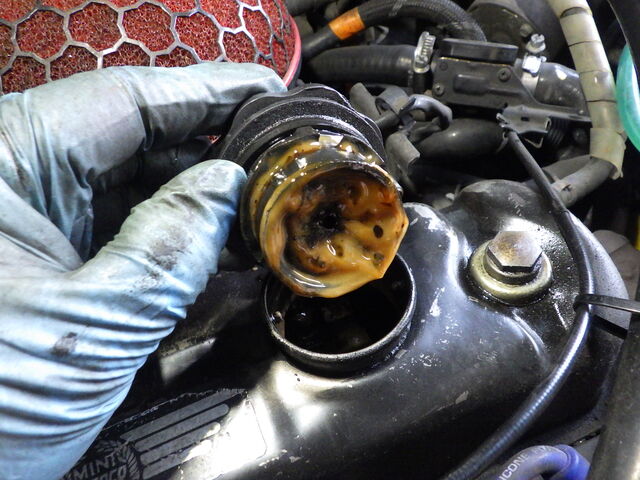オイルフィラーキャップには乳化したオイルがぺっとり。。。