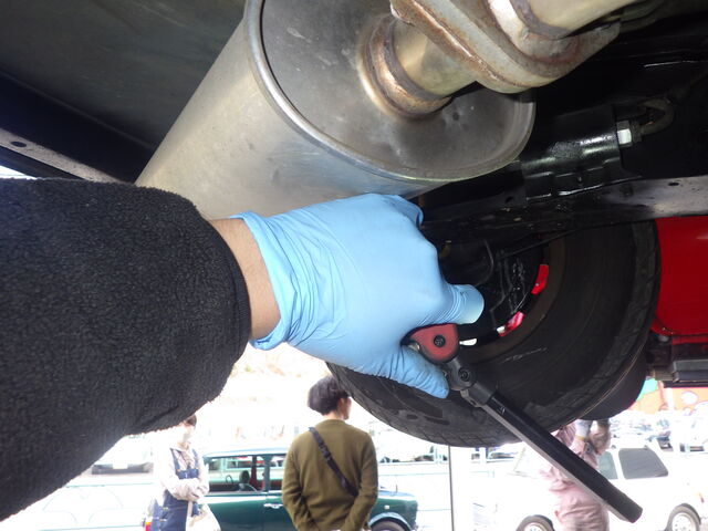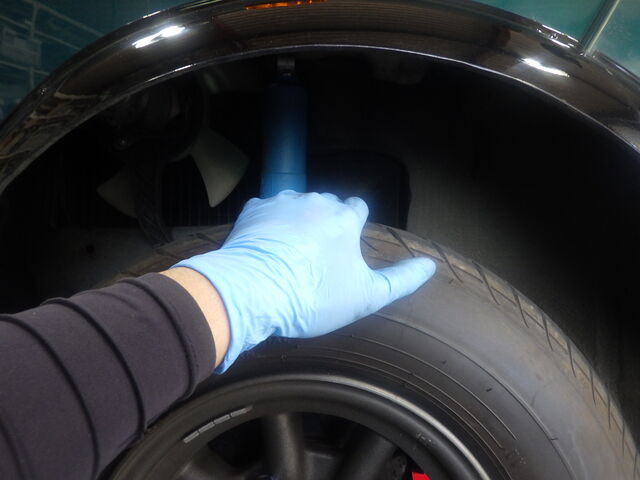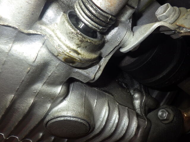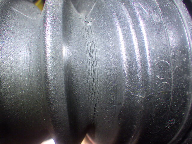 右のドライブシャフトアウターブーツに小さいクラック入っています。