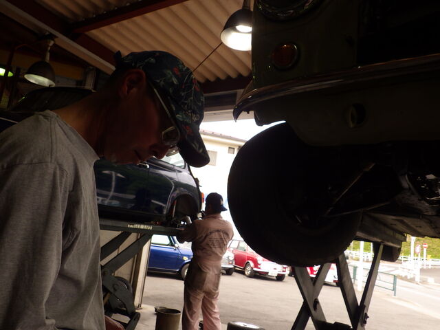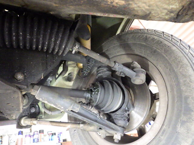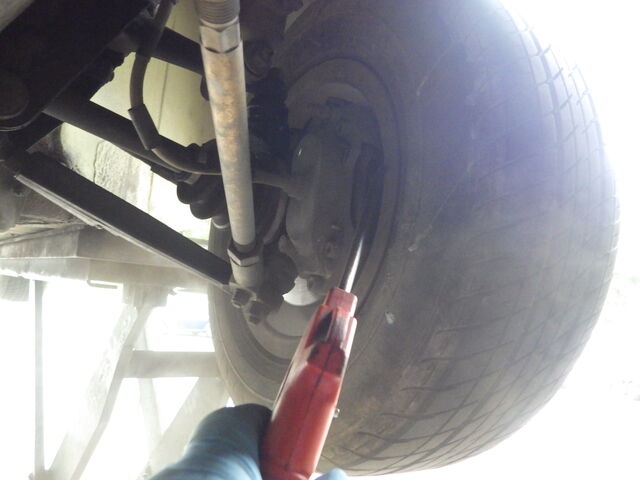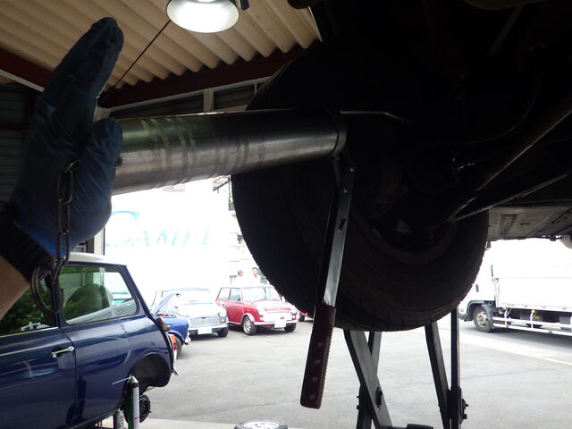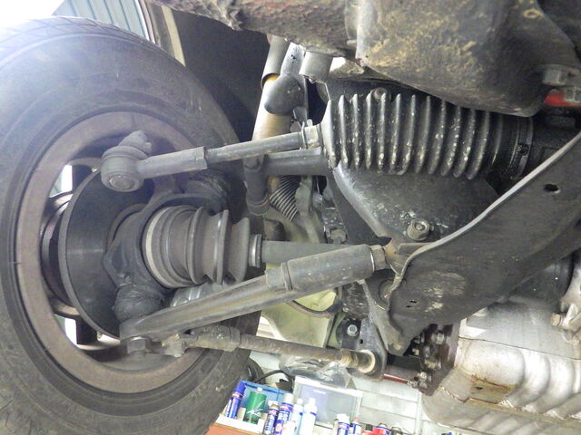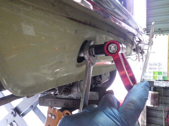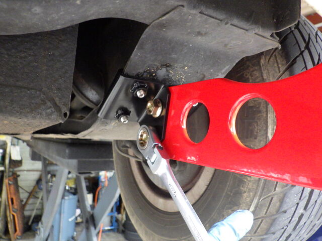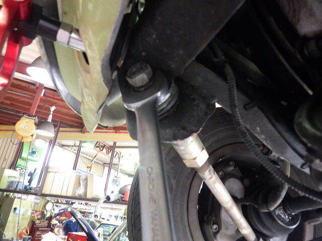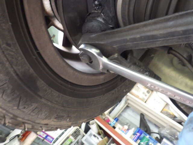 左のロアアームサポートシャフトのナットが抜けかかっていました(;´・ω・)