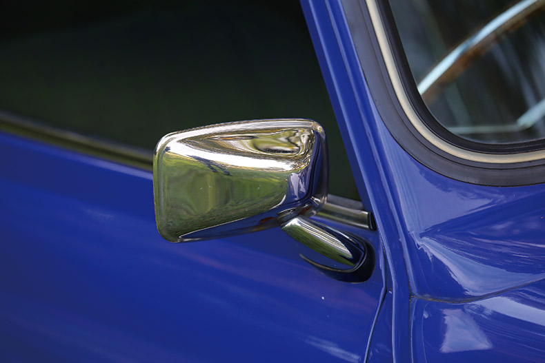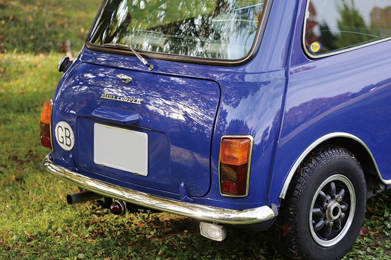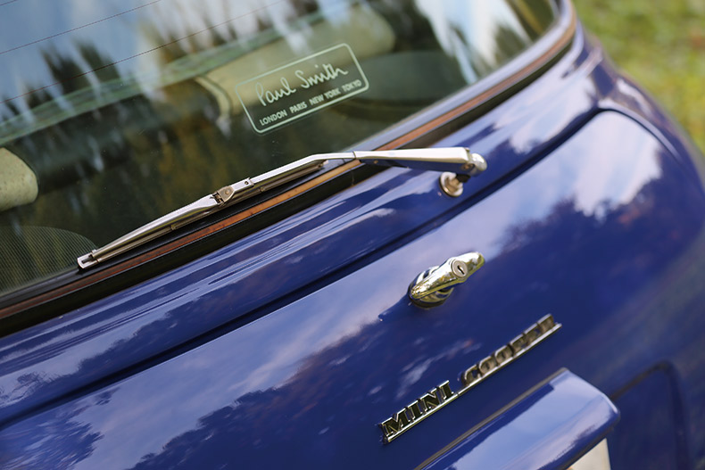 実は僕がミニを買った2年後に、ポールスミスが発売されたんです。当時は、ポールスミスに買い換える予算がなく、いずれポールスミスブルーにオールペンにしようと考えていたという。 フ ェンダーレスにしたのはクラシックの形にこだわりがあるからで、MkIIIへと方向転換したそうだ。クラシックスタイルにしてからもエンブレムをとことんポールスミスにこだわって、クーパータイプのものとポールスミスのものをくっつけたオリジナル仕様! 「途中で折れてしまったエンブレムを無理いってもらいました」と中々面白い。シートなどの内装に関してはこれからバージ ョンアップする予定とのことで、ポールスミスのクラシックスタイルを楽しむという。 「まだまだ乗りつぶすつもりです」