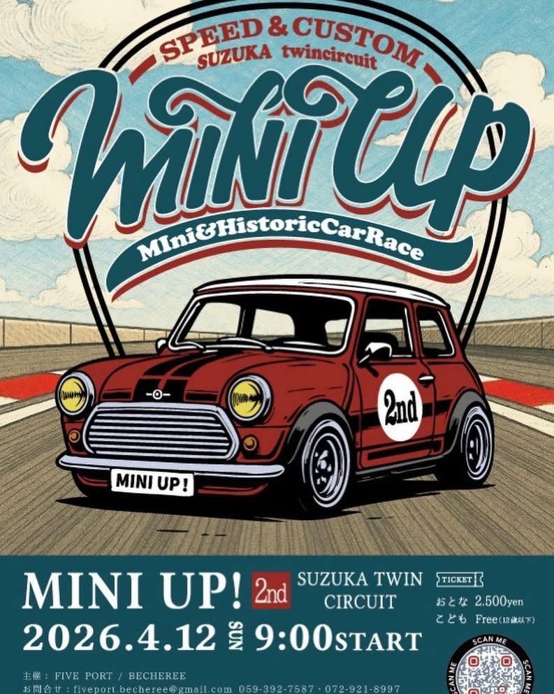 SHOP BLOGJMSA イベント情報 by streetmini2026年1月20日2026年1月20日 MINI UP! 2nd 場所:SUZUKA TWIN CIRCUIT 日程:2026.4.12 (日) 時間:9:00〜 株式会社ジェイ・エム・エス・エー〒430-0807 静岡県浜松市中区佐藤二丁目25番25号《公式サイト》《Facebook》 ・お近くのミニスペシャルショップをお探しの方 SPECIAL SHOP ・厳選USEDミニはここにアクセス USED MINI