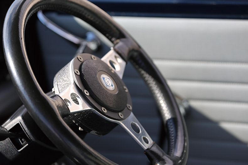 小径のステアリングとバケットシートで内装はスポーティー。抜けの良いマフラーはちょっと音が大きい