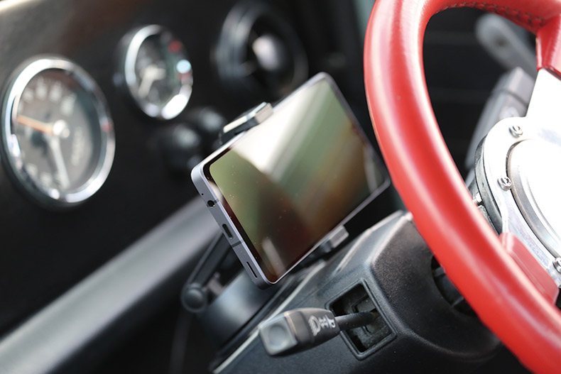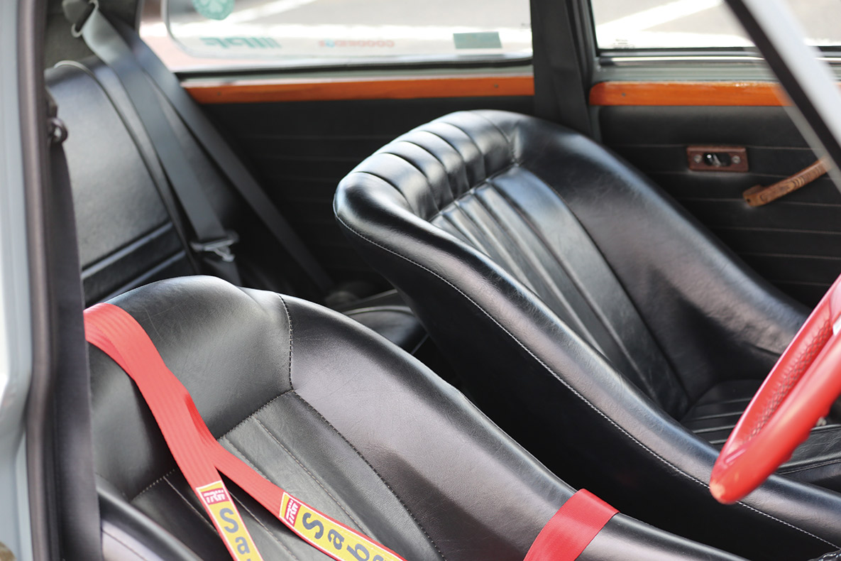やや重いけど小径サイズのウッド製のステアリングのおかげで乗り降りがしやすいので助かってるとのこと(笑)