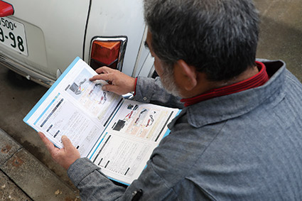マーク:「電装品という幅広いお題を聞いて最初はめまいがしましたが、ヒューズBOXの装着までと聞いてホッとしました! 今回の撮影は午前8時スタートでしたが、たしろさんは夜明け前の5時から準備をしていたとか?」。