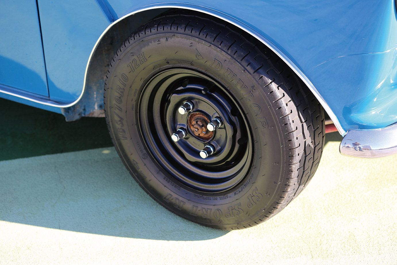 サイドブレーキの故障が原因でダメになったタイヤのホイールを鉄チンホイールに換えている。
