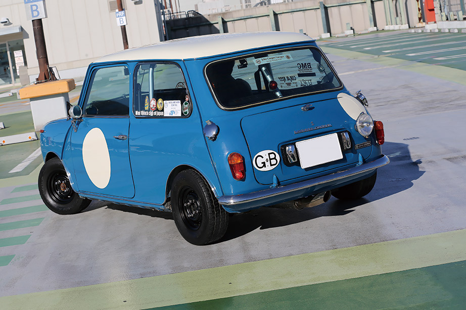買った当時は12インチのほぼノーマル仕様のジョン・クーパーで色はアーモンドグリーンだったが、自分なりにカッコいいミニを追及し10インチ仕様の鉄チンホイールなどカッコいいクルマに近づけていったという。